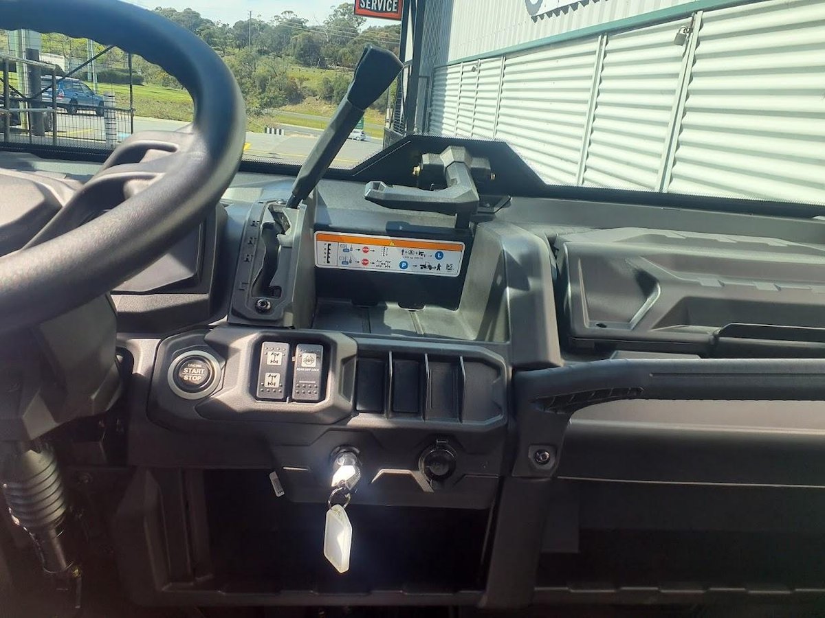 This Defender XU HD10 is a heavy-duty side-by-side designed for serious work and all-weather performance. Powered by a Rotax 976 cc V-twin engine producing around 82 horsepower and strong low-end torque, it’s built to haul, tow, and climb with ease. It features selectable 2WD / 4WD with an automatic locking front differential, long-travel suspension, and a tilting cargo box capable of carrying about 450 kg.