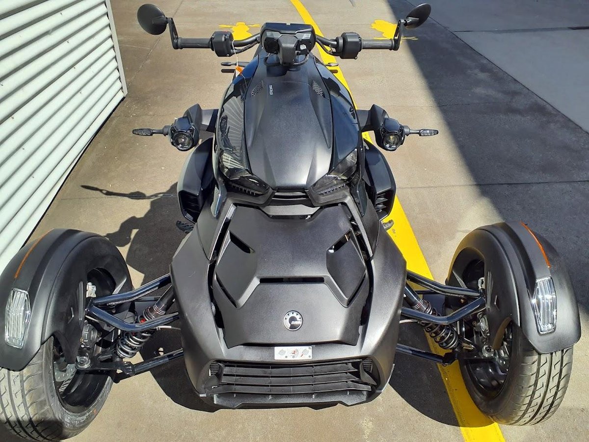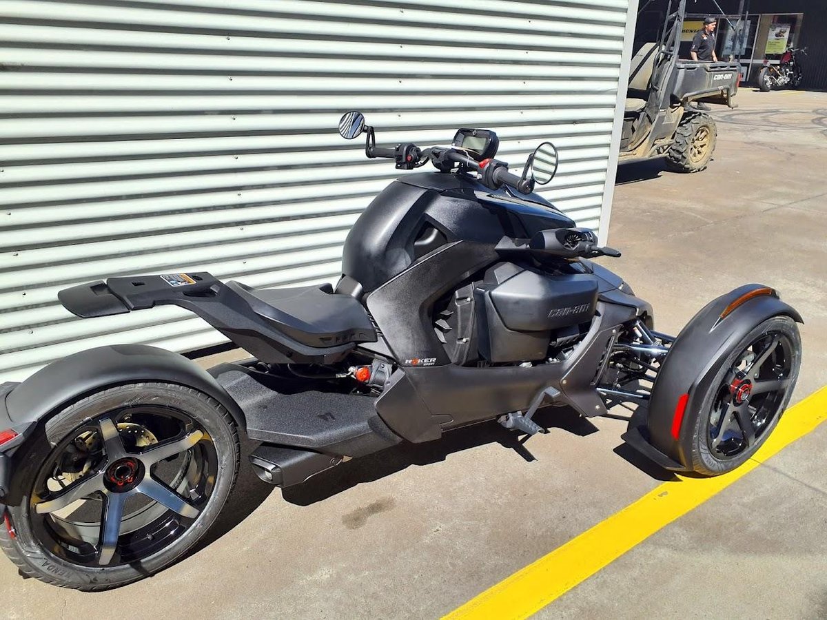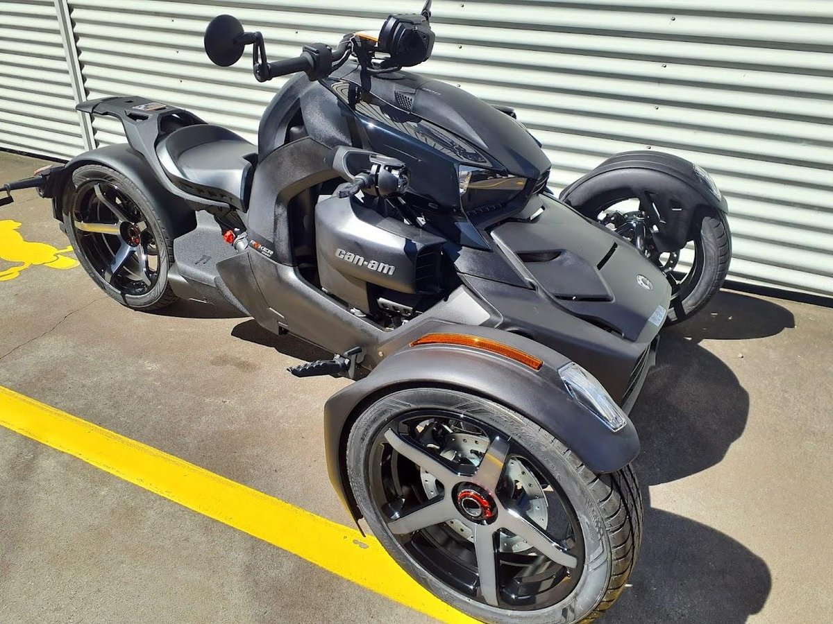 The 2023 Can Am Ryker Sport is a three wheel roadster designed for aggressive street riding with a low center of gravity and a planted, confidence inspiring feel. It is powered by a Rotax inline three engine paired with an automatic CVT transmission, making it easy to ride with no clutch or shifting required. The Sport model adds upgraded KYB suspension, sport tuned handling, and a more performance focused setup compared to the base Ryker, while still retaining everyday usability and comfort.