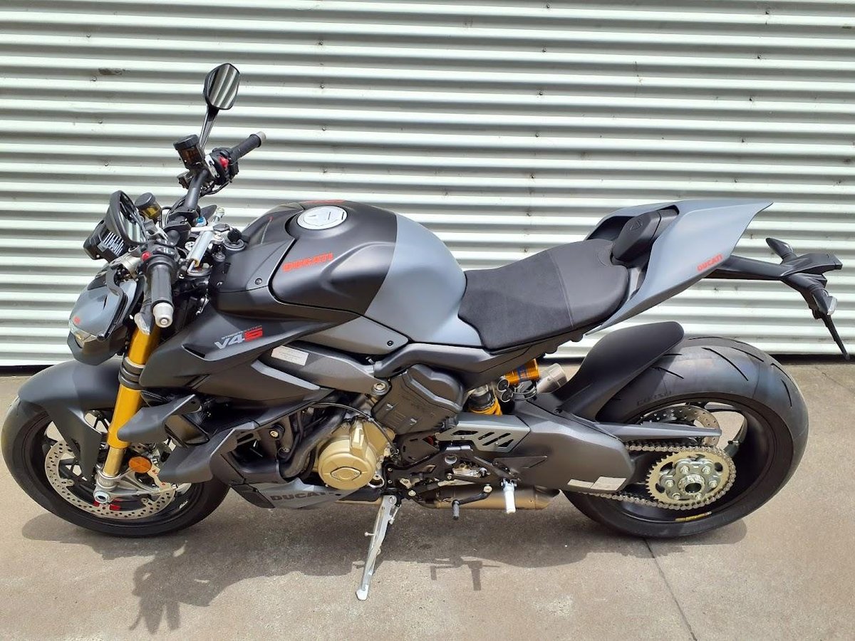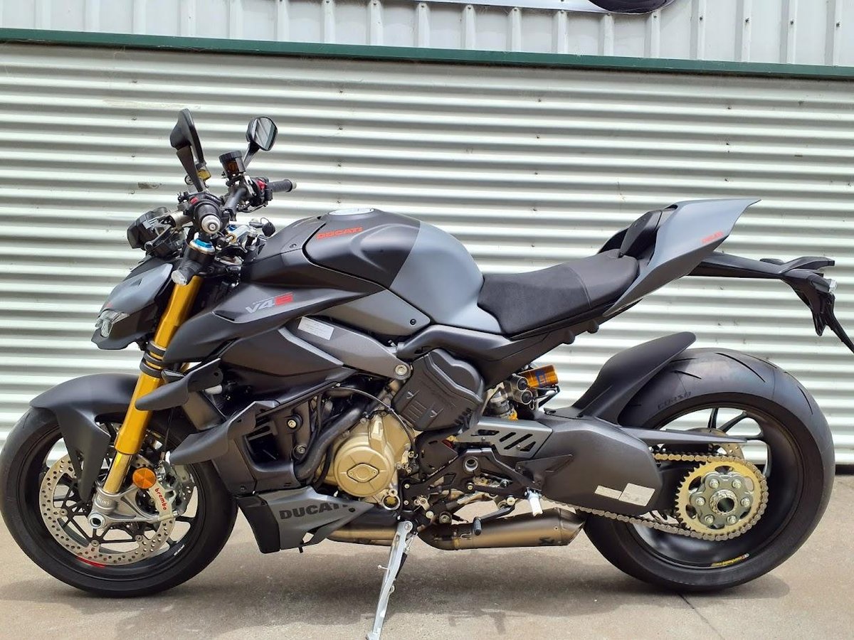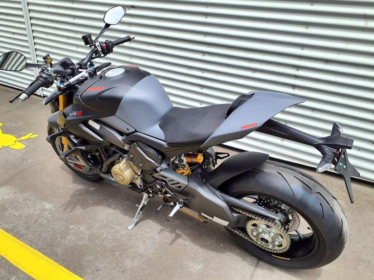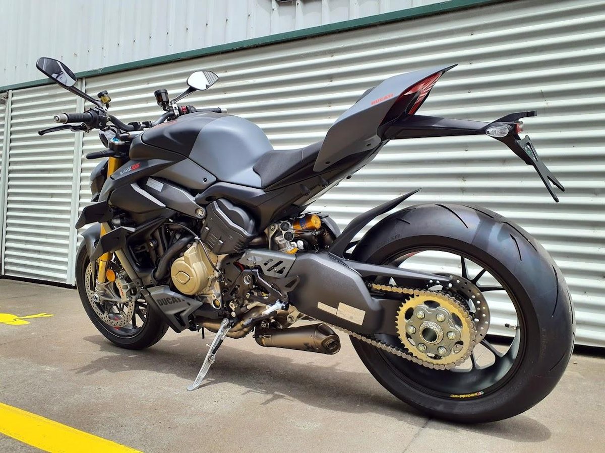 The 2024 Streetfighter V4 S is a naked superbike powered by an 1103 cc Desmosedici Stradale V4 engine, producing over 200 horsepower in stock form. It features top-tier Öhlins electronic suspension, Brembo Stylema brakes, and a lightweight chassis taken directly from Ducati’s superbike platform. With a complete racing exhaust system fitted and properly tuned, the engine becomes even more responsive, sheds weight, and delivers noticeably stronger mid-range and top-end performance, turning an already extreme machine into a full-blown track-spec monster for the street.