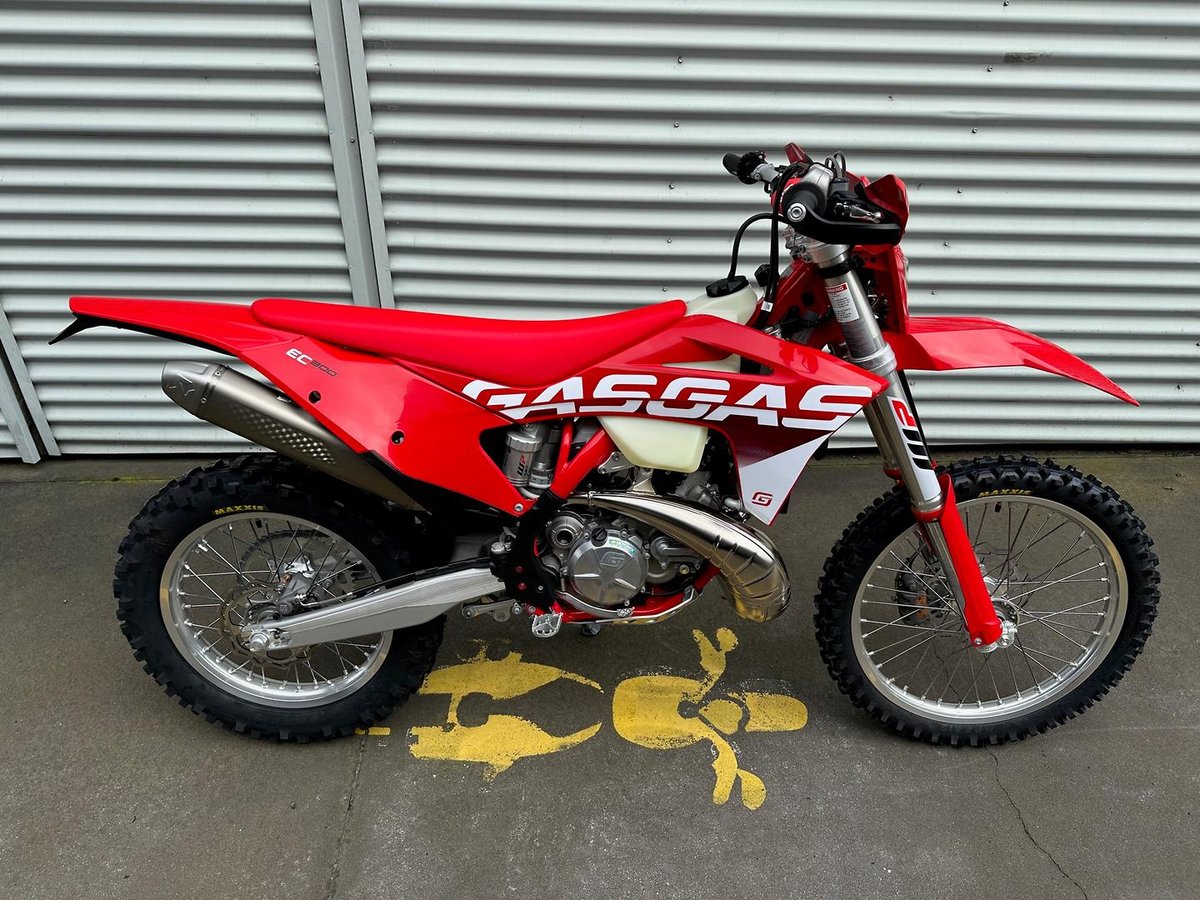 !!! 2023 GASGAS EC300 TWO STROKE FITTED WITH AN AKRAPOVIC SLIP-ON LINE MUFFLER-WRAP AROUND HANDGUARDS AND A SKID PLATE !!!