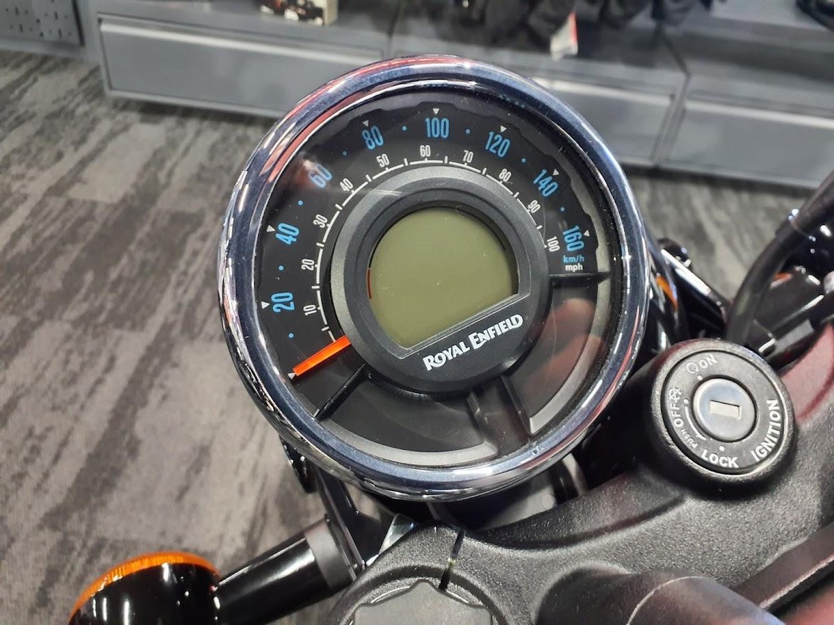 The Meteor 350 features a Tripper™ navigation system, the first-ever in a Royal Enfield. Powered by Maps and the Royal Enfield App, that connects smartphones with the motorcycle through Bluetooth. Tripper is a sophisticated navigation solution, rich in features specially developed for motorcyclists, that indicates directions through an intuitive display system. Combined with a host of facilities on the Royal Enfield App, including a USB charging port on the motorcycle.