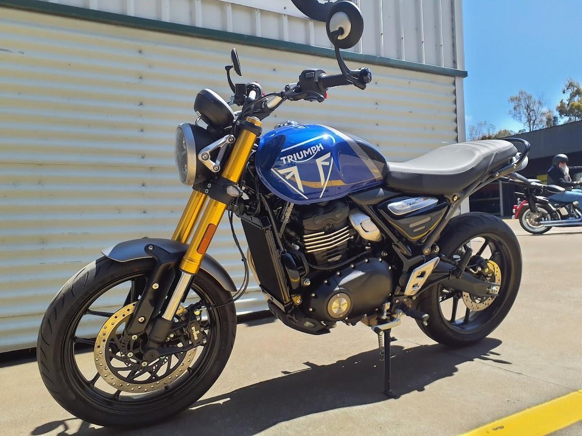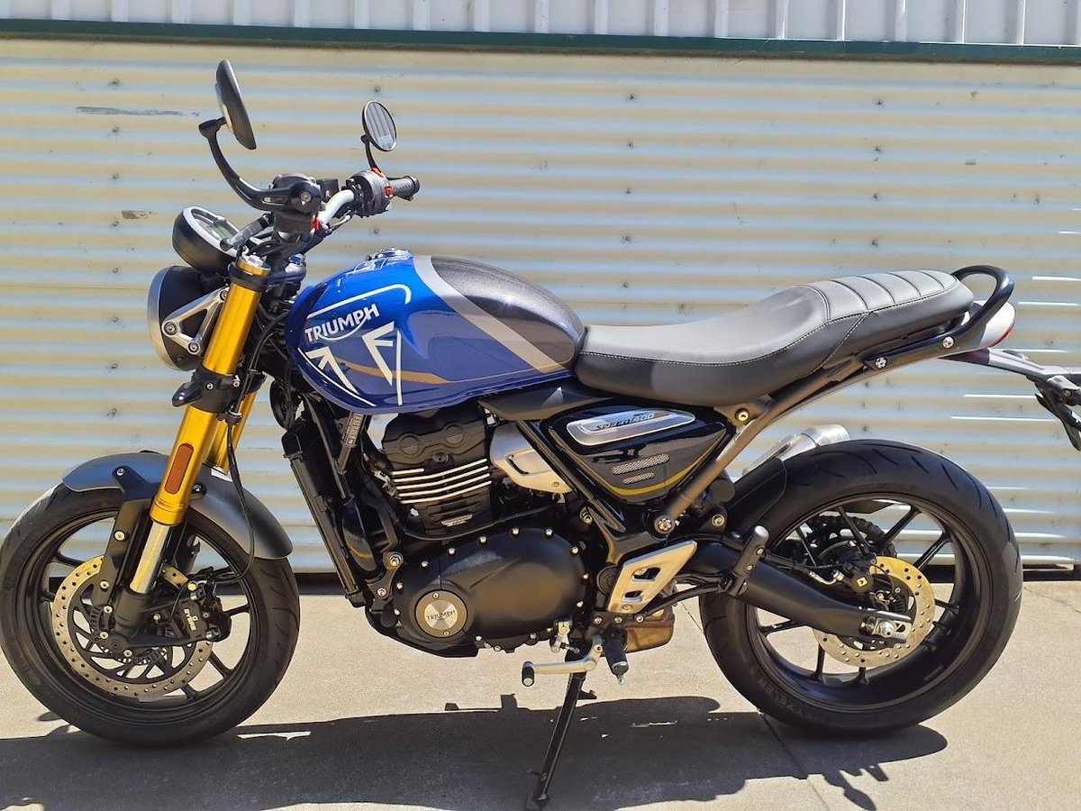 Learner Approved MotorCycle. The 2025 Triumph Speed 400 is a compact, entry-level road bike featuring a 399 cc liquid-cooled single-cylinder engine designed for accessible performance and everyday usability. It rides on a lightweight steel frame with a comfortable, upright riding position, making it suitable for city commuting, light touring, or weekend rides. The bike balances manageable power with simple handling and modern styling, offering a solid entry point for riders seeking a flexible and easy-to-ride machine.