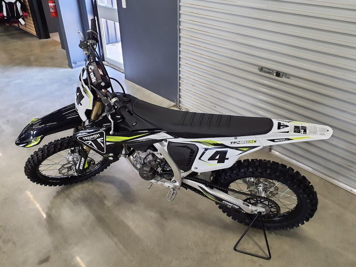 Introducing the Triumph TF450 RC—a revolutionary fusion of cutting-edge design and unparalleled performance. Engineered for the bold, built for the speed seekers, this powerhouse bike is the ultimate machine for anyone who lives life in the fast lane.