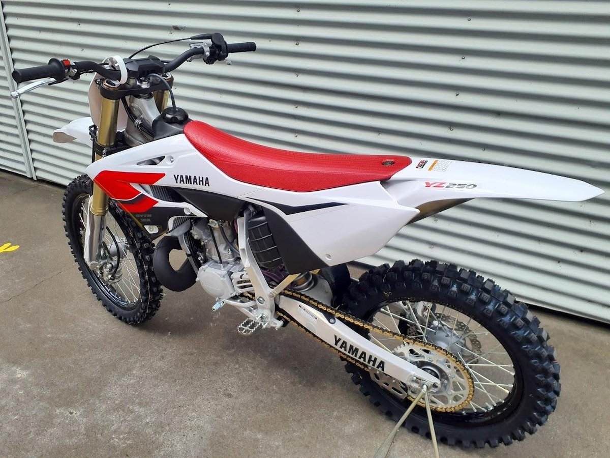 The 2026 Yamaha YZ250SP is a special-edition 249 cc liquid-cooled two-stroke motocross bike built for riders who want classic two-stroke power with upgraded race-ready components. It uses Yamaha’s Power Valve System, a 5-speed close-ratio transmission, and an aluminium frame paired with premium KYB suspension. The SP model includes special graphics and heritage styling. With a wet weight around 103 kg and a tall, aggressive seat height near 975 mm, it’s a lightweight, hard-hitting race machine designed for serious track performance.