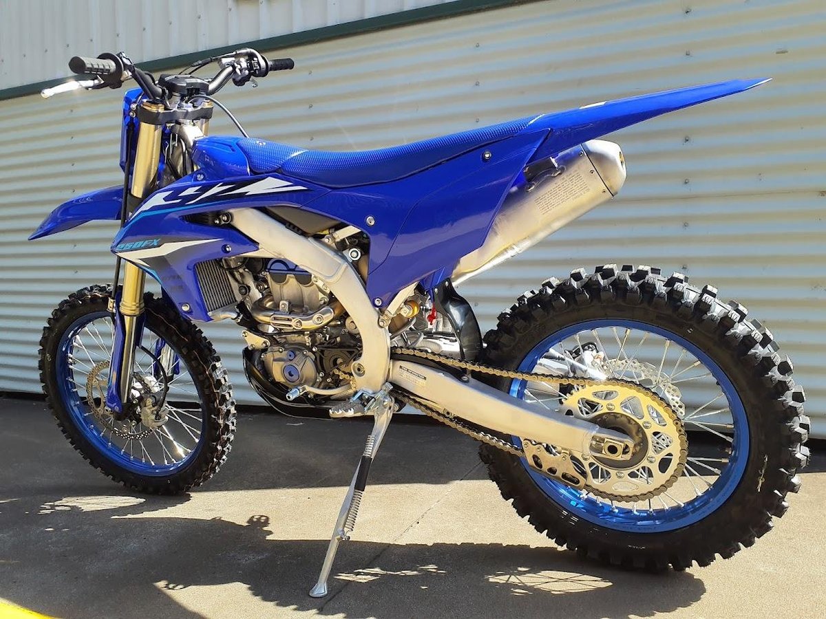 The 2026 Yamaha YZ250FX is a high-performance cross-country motocross-style bike built for off-trail and enduro racing. It’s powered by a 249 cc liquid-cooled two-stroke engine with Yamaha’s Power Valve System for broad usable power and strong mid-range punch. It uses a close-ratio 5-speed gearbox and rides on a lightweight aluminium frame with fully adjustable KYB suspension that’s tuned for rough terrain and long-distance off-road performance. With a slightly taller ride height and suspension travel compared to the pure motocross version, it balances aggressive handling with off-trail capability.