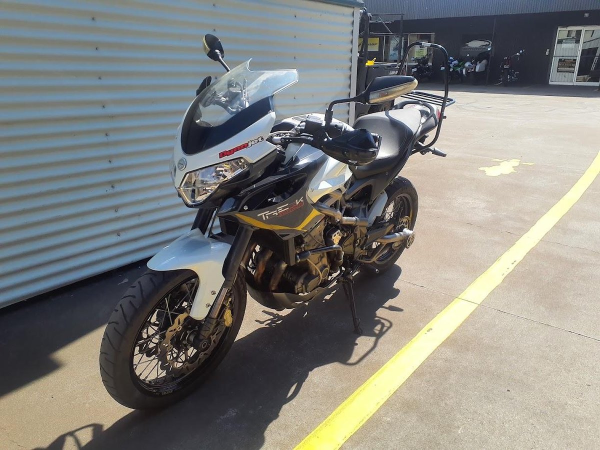 The Benelli Tre-K 1130 Amazonas is an Italian-built adventure-touring motorcycle designed to combine high-performance road manners with rugged touring capability. It is powered by a 1,131 cc inline three-cylinder engine that delivers strong acceleration and smooth power, more reminiscent of a sportbike than a traditional adventure machine. The bike features a steel trellis frame, long-travel suspension, spoked wheels, and an upright riding position, making it well suited to long-distance highway riding and occasional gravel or dirt roads rather than serious off-road use.