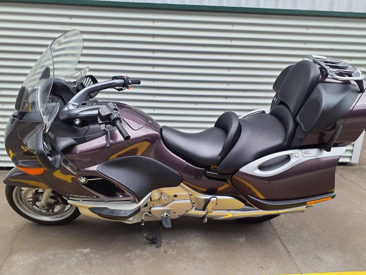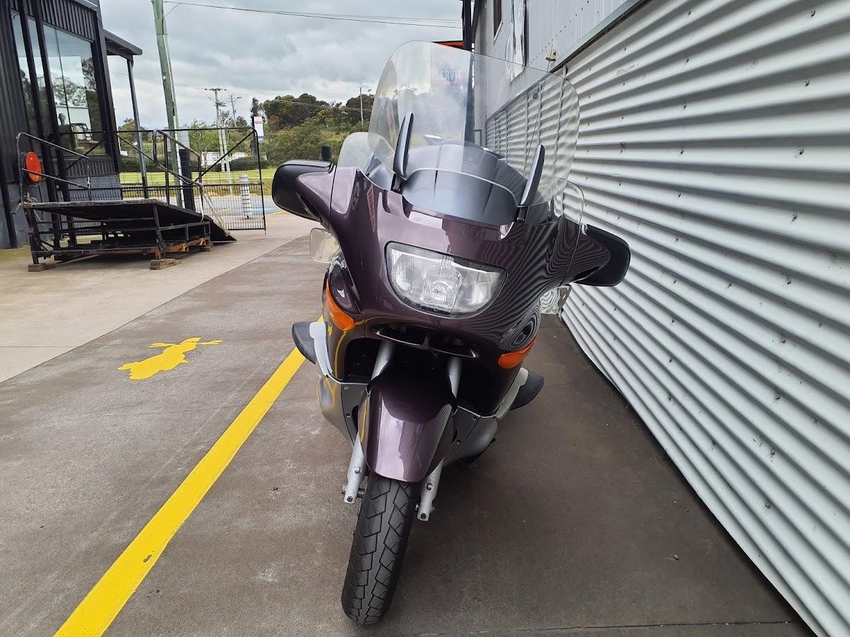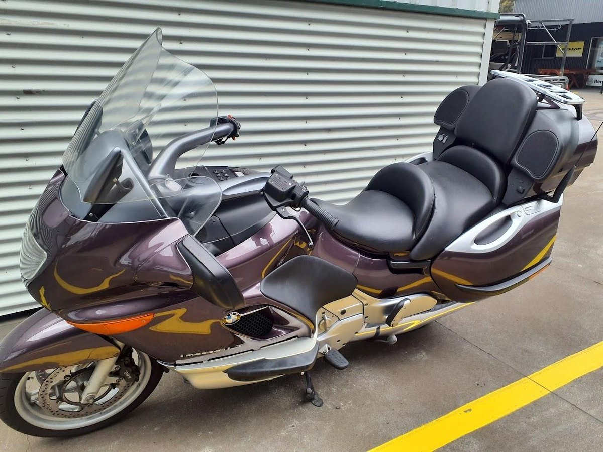 The 2002 BMW K 1200 LT is a full-size luxury touring motorcycle powered by a 1,172 cc liquid-cooled inline-four engine that produces around 98 hp and 115 Nm of torque. It uses a 5-speed gearbox with shaft-final-drive, rides on BMW’s Telelever front suspension and Paralever rear suspension, and features a low seat height (770 mm) for its size and substantial touring-capable weight (about 378 kg wet). The bike comes equipped with full fairing, windscreen, integrated panniers/top-case options, and advanced features aimed at long-distance comfort and stability.