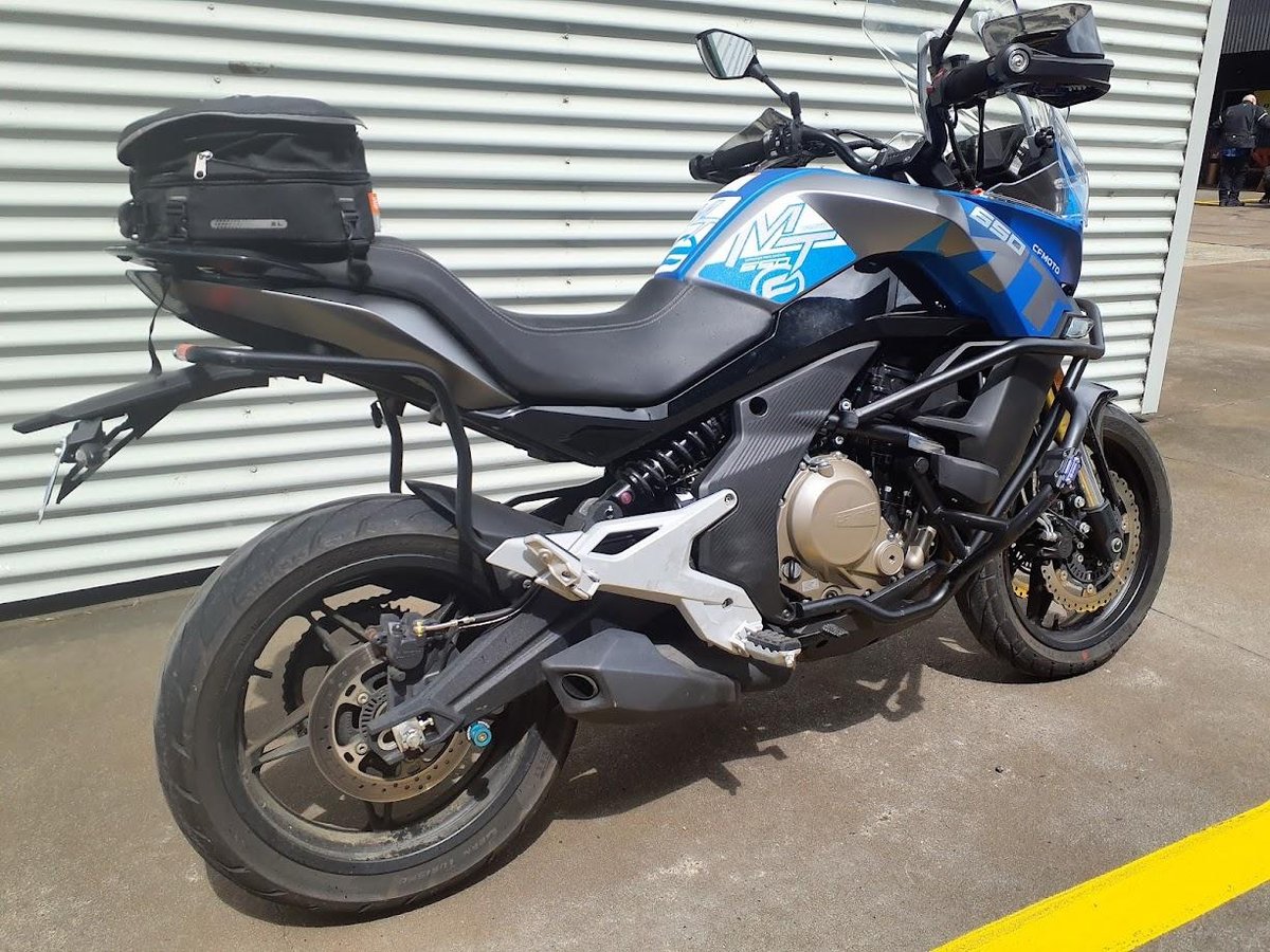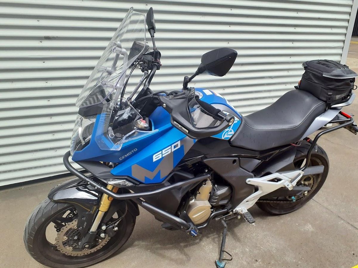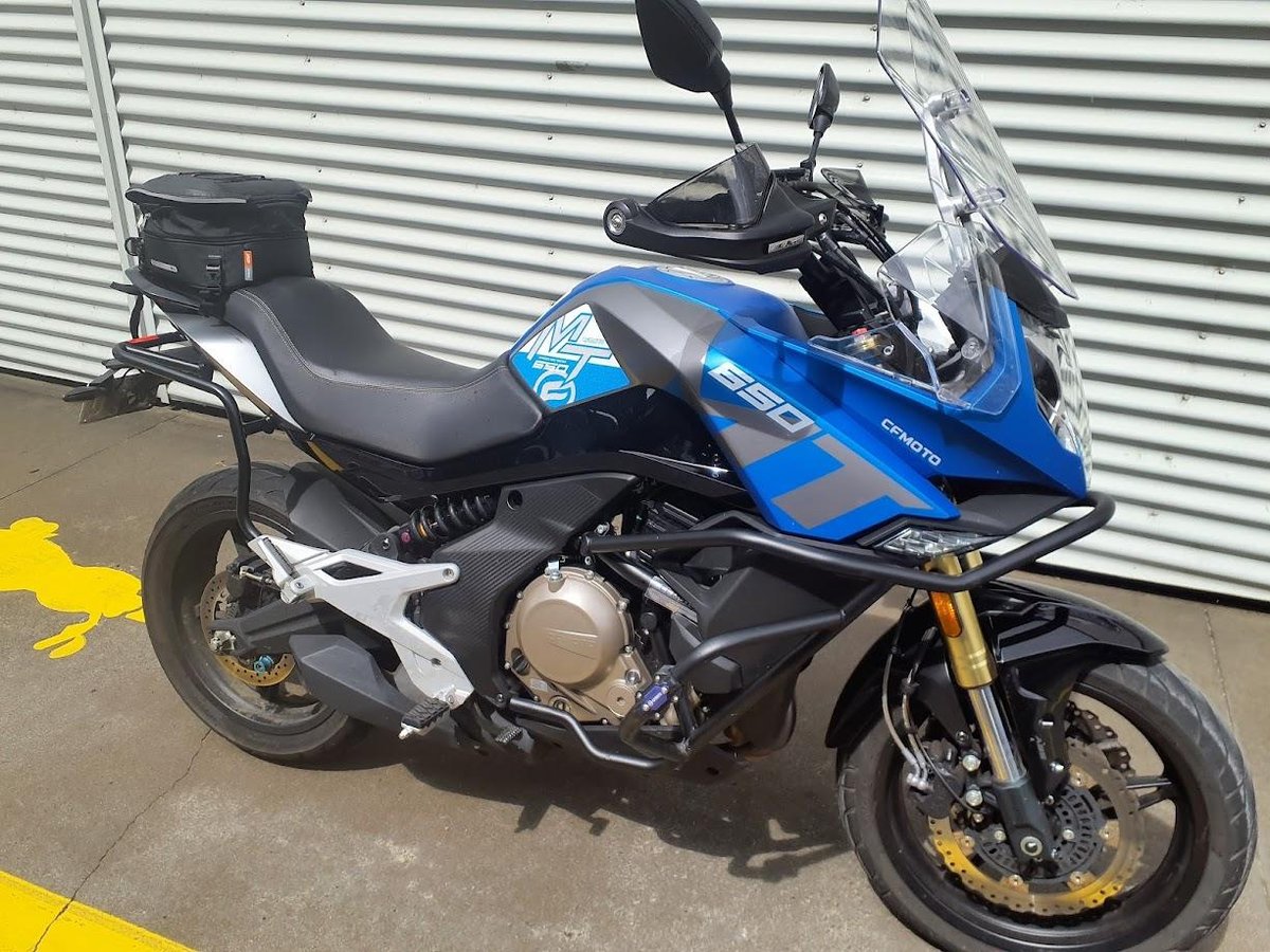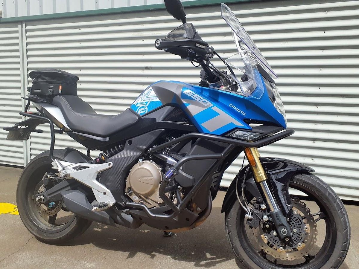 Learner Approved MotorCycle. The 2022 CFMOTO 650MT is a mid-sized sport-touring adventure bike powered by a 649cc liquid-cooled parallel-twin engine producing around 55 horsepower and 62Nm of torque. It features a 6-speed gearbox, steel diamond frame, and KYB suspension with long travel for mixed-surface capability. With an 18-litre fuel tank, 840mm seat height, and a wet weight of about 218kg, it’s designed for riders who want comfort, range, and practicality for both city and touring use.