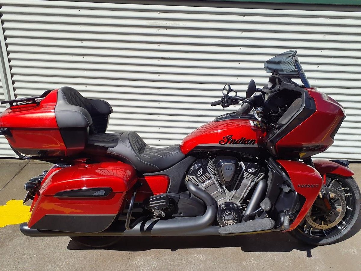 The 2022 Indian Pursuit Dark Horse is a premium, American touring motorcycle featuring the powerful liquid-cooled engine, offering aggressive styling, advanced Ride Command infotainment, selectable ride modes, adjustable suspension, heated grips/seats, and extensive remote-locking storage, providing unmatched comfort and performance for long-distance touring. It blends classic V-Twin touring with modern technology, including keyless ignition and comprehensive rider amenities.