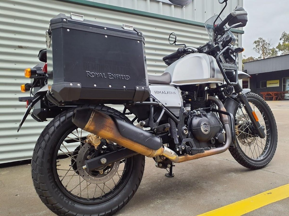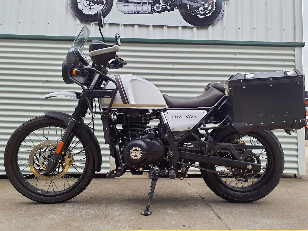 Learner Approved MotorCycle. The 2021 Royal Enfield Himalayan E5 Base is a rugged adventure motorcycle built for both road and off-road exploration. It’s powered by a 411 cc air-oil-cooled single-cylinder engine tuned for tractable low-end and mid-range torque, ideal for touring, commuting, and light off-pavement riding. The bike features long-travel suspension, a comfortable upright riding position, and a sturdy steel frame designed to handle varied terrain with confidence. The Base model offers a straightforward setup focused on capability and reliability without excessive frills.