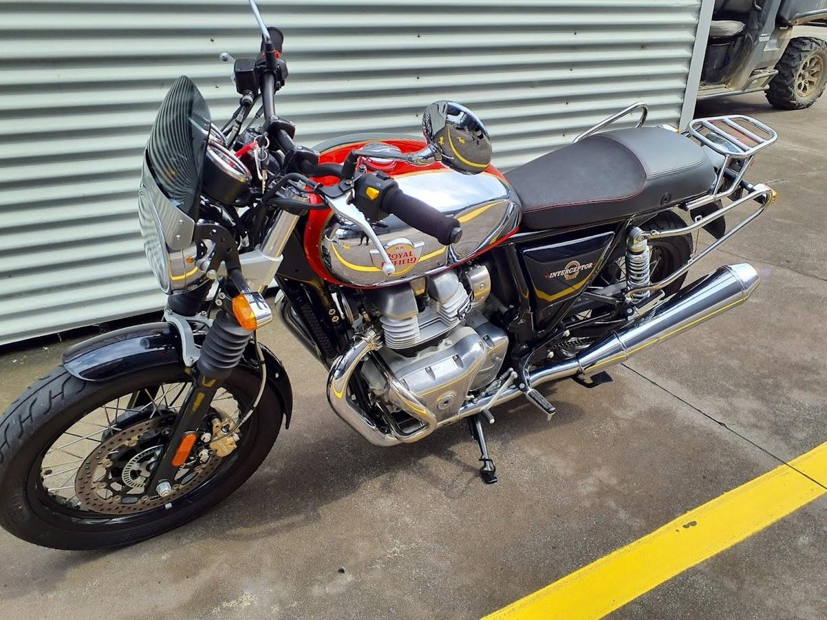 Learner Approved MotorCycle. The 2022 Royal Enfield Interceptor 650 Chrome is a retro-styled roadster powered by a 648 cc air-oil-cooled parallel-twin engine producing around 47 hp and strong mid-range torque, paired with a 6-speed gearbox for smooth cruising.