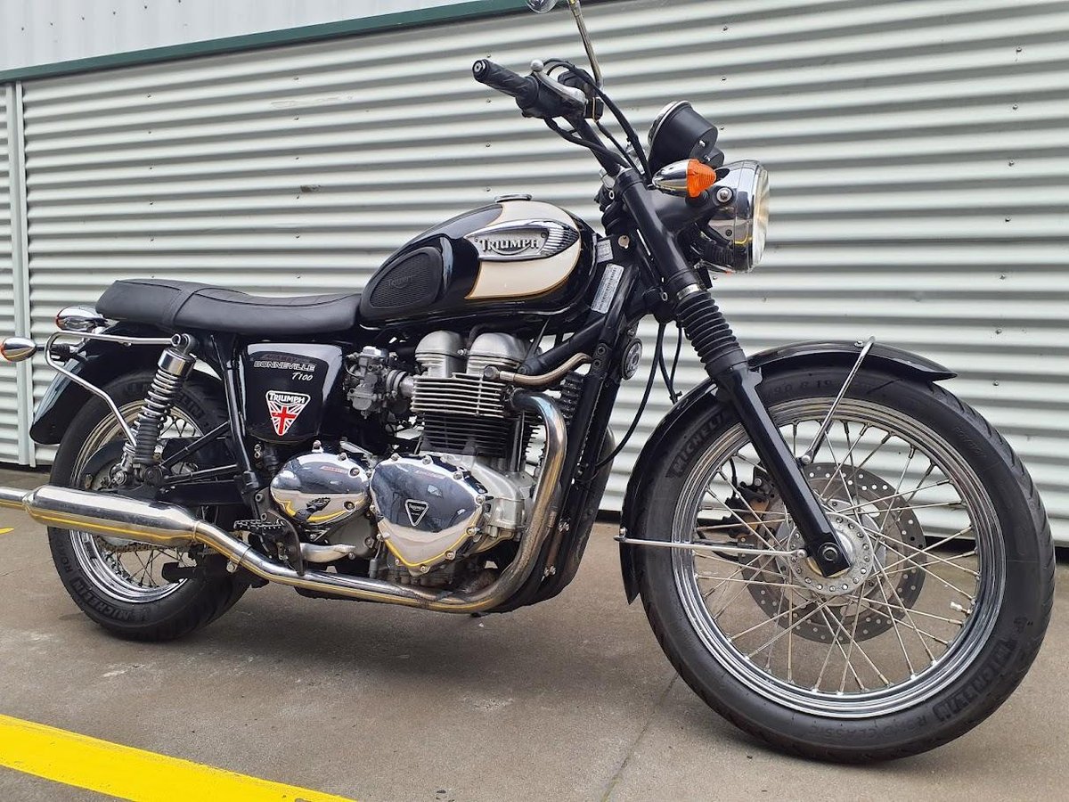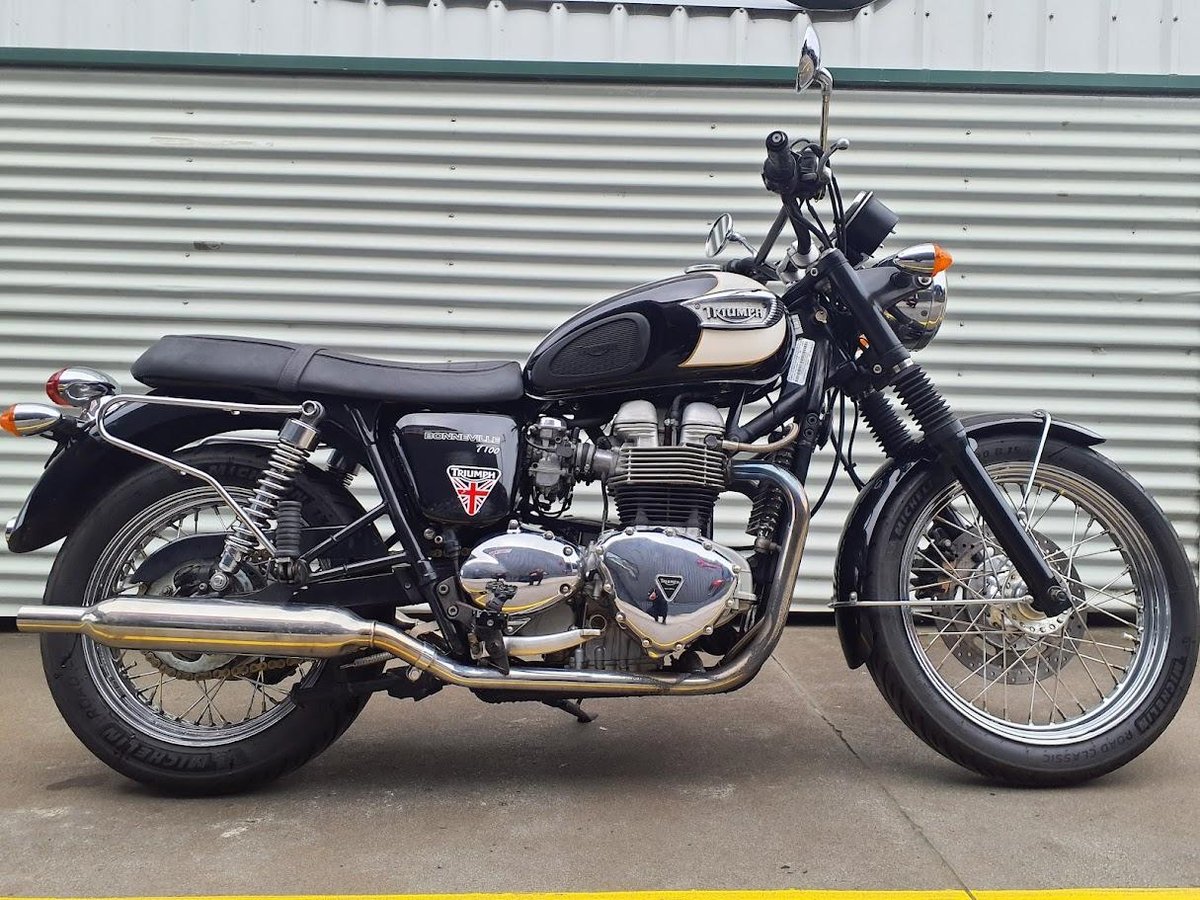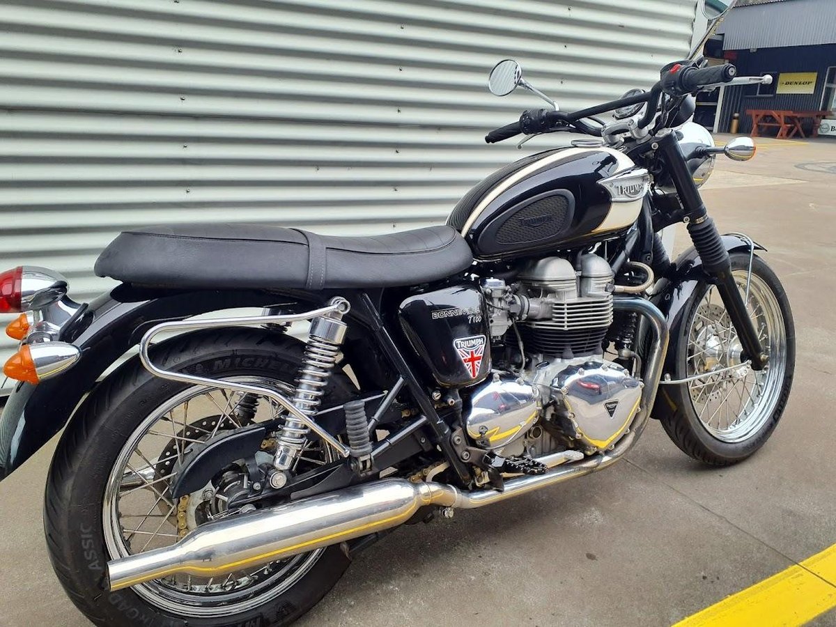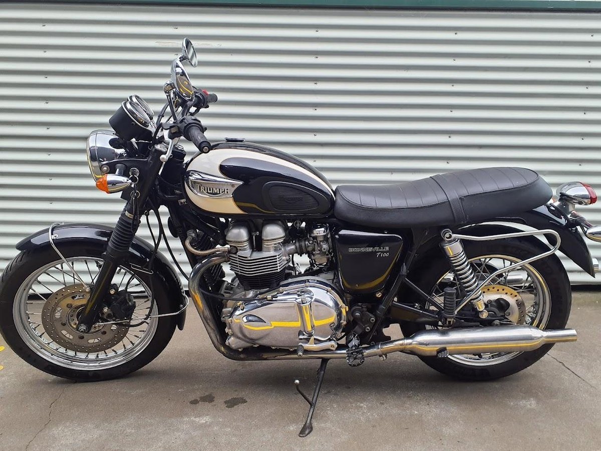 The 2004 Triumph Bonneville T100 is a modern classic motorcycle that pays homage to the iconic 1960s Bonneville. It features a 790cc air-cooled, parallel-twin engine delivering approximately 61 horsepower at 7,400 rpm and 60 Nm of torque at 3,500 rpm. The bike boasts a 5-speed gearbox, a dry weight of 205 kg, and a seat height of 775 mm. Its design includes spoked wheels, chrome accents, and a two-tone paint scheme, embodying retro aesthetics with contemporary performance.