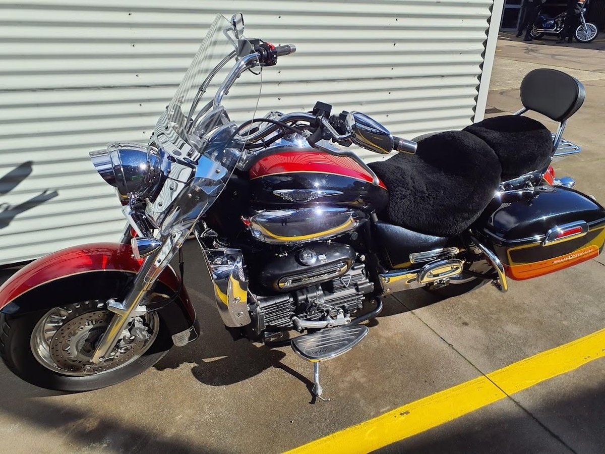 The 2013 Triumph Rocket III Touring is a heavyweight cruiser built specifically for long-distance comfort and smooth highway performance. It’s powered by a colossal 2294cc inline 3-cylinder engine—the largest-displacement production motorcycle engine of its time—producing immense torque low in the rev range. Designed with classic cruiser styling, it features a wide, cushioned seat for rider and passenger, swept-back handlebars, large footboards, and hard saddlebags.