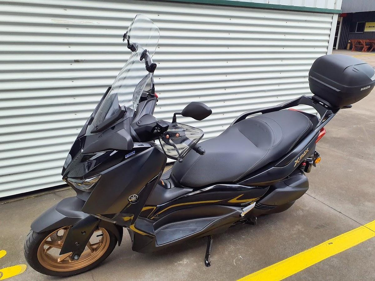 Learner Approved MotorCycle. The 2022 Yamaha XMAX 300 is a premium maxi-scooter built for urban commuting and sporty, relaxed rides. It has a 292cc liquid-cooled single-cylinder engine, automatic CVT drive (twist-and-go), and a generous under-seat storage that can hold two full-face helmets. It comes with ABS front & rear, traction control, smart key start, LED lighting, adjustable windscreen, and enough comfort and practicality to make it usable both in the city and on longer trips.